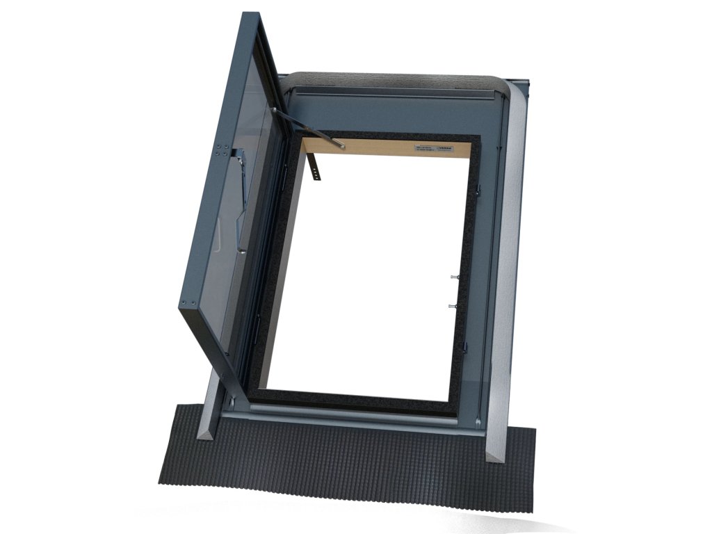 Střešní výlez je vybaven vyztuženou spodní částí rámu s ocelovým nášlapem pro bezpečný výstup na střechu. Otevírání křídla je možné nastavit ve 3 polohách a umístit na pravou nebo levou stranu. Součástí balení je také odvodňovací žlab pro profilované krytiny, držáky střešních latí a pěnové klínky pro spojení s taškou.